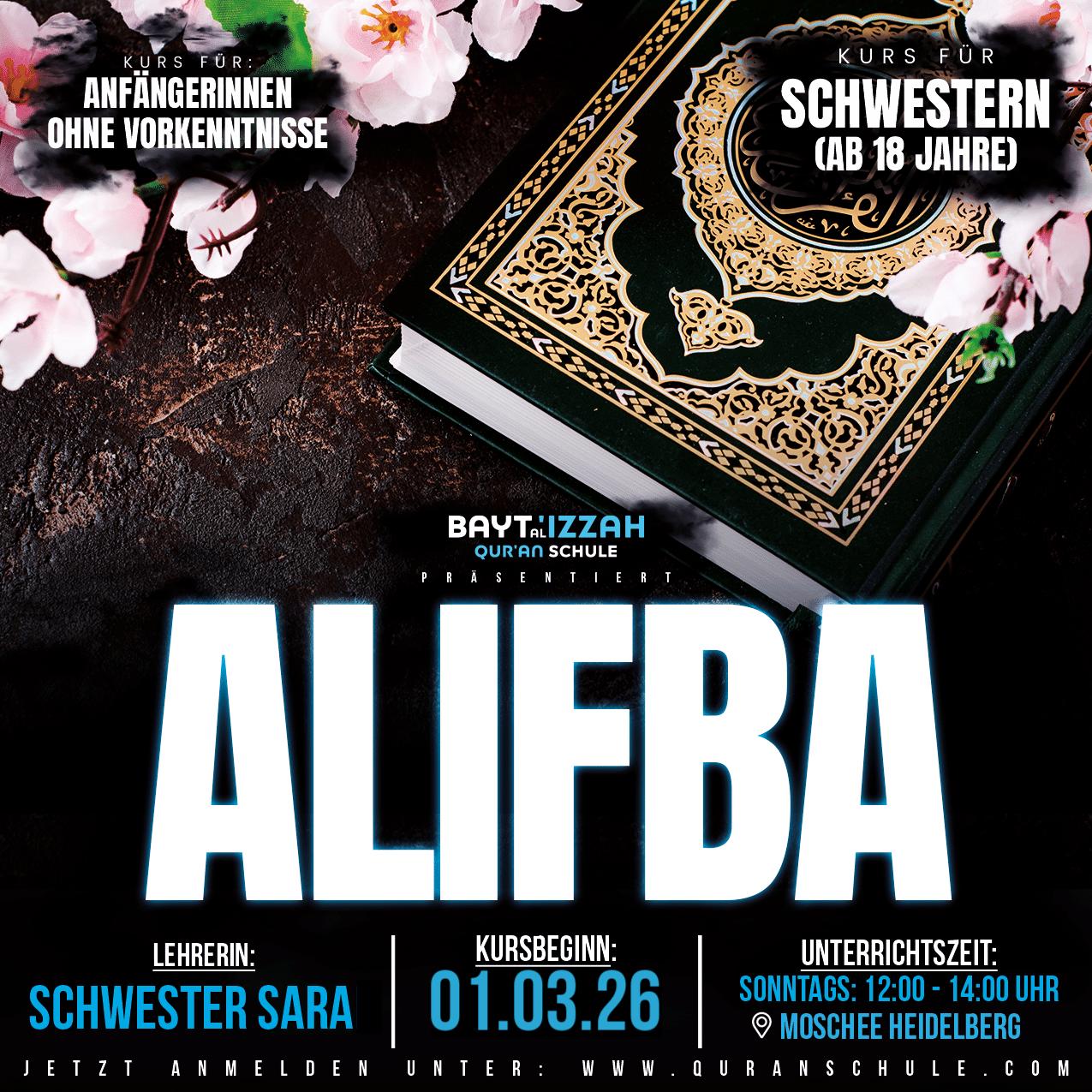 - Der Kurs findet im Frauenbereich der Moschee Heidelberg statt.